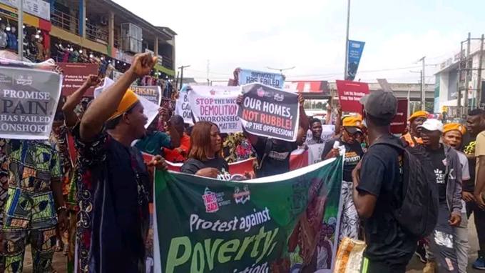 Hundreds of demonstrators on Friday took to the streets of Lagos, marching from the Ikeja Bridge to Alausa, the seat of the Lagos State Government, to...